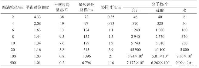 表1冷凝酸滴粒徑與平衡過飽和度