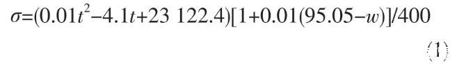 表面張力與物質的性質相關,也是物性之一。液體分子間作用力越大,表面張力越大。由于氫鍵的存在,水分子間作用力很大,所以水的表面張力較大。硫酸的表面張力也不小,在20℃下,w(H2SO4)95%硫酸表面張力是水的80%左右。硫酸溫度提高,表面張力略有減小,但減小的速率比水要慢得多。隨著硫酸濃度增大,表面張力逐漸減小。對于濃硫酸而言,表面張力可用式(1)計算: