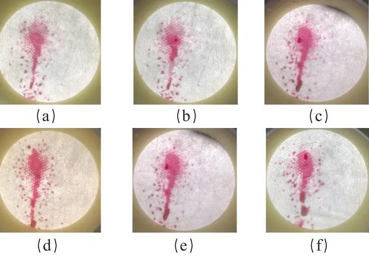 圖3口罩內(nèi)表面的合成血液穿透試驗(yàn)情況